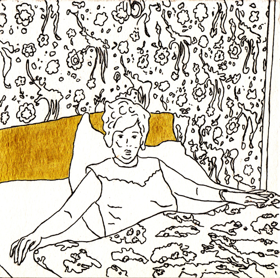 „Schoß“ aus der Serie „Familienalbum (Unbekannt 1971-76)“, 2017, Acryl, Fineliner auf Papier, 16 x 21,5 cm